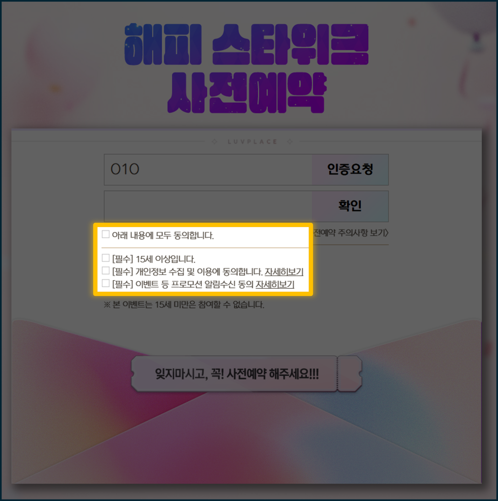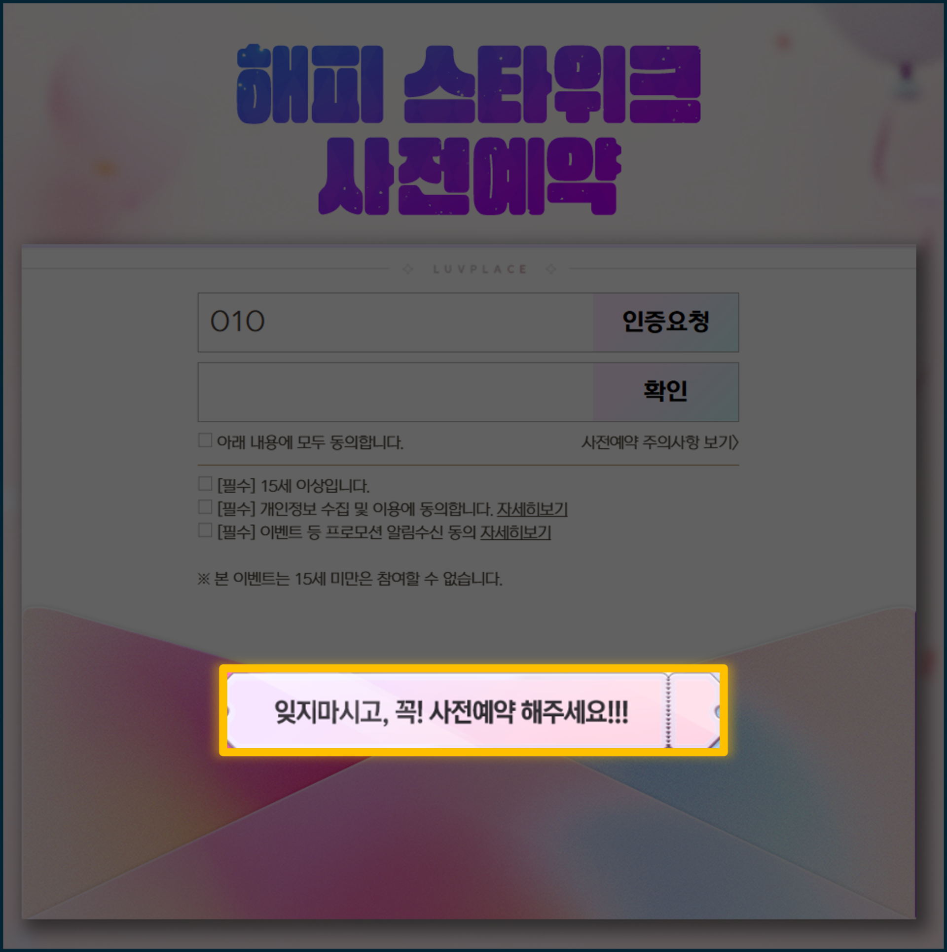 3. 사전예약은 15세 이상만 가능합니다.