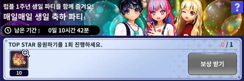 해당 미션의 완료 보상인 1주년 축하해! 생일 선물 박스 10개를 모든 스타 여러분께 지급해 드릴 예정입니다.