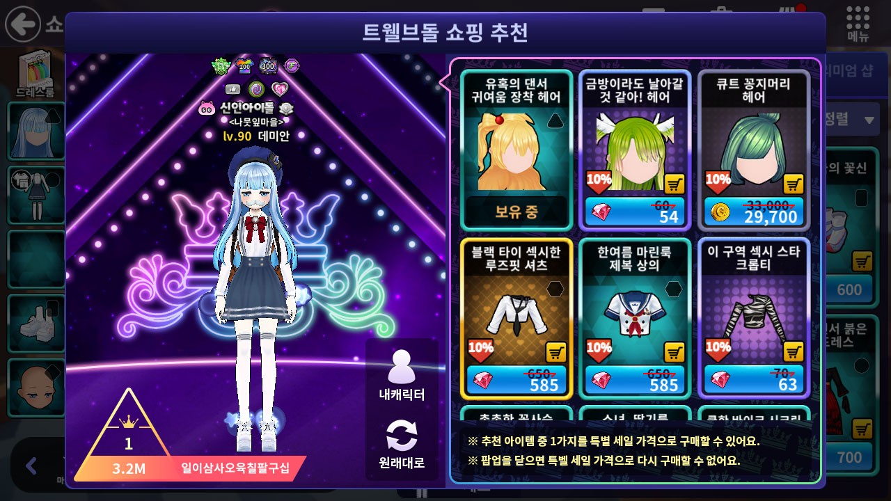 쇼핑몰 프리미엄 샵, 루비 샵, 골드 샵의 아이템 중 한 가지를 특별 세일 가격으로 구입할 수 있습니다.