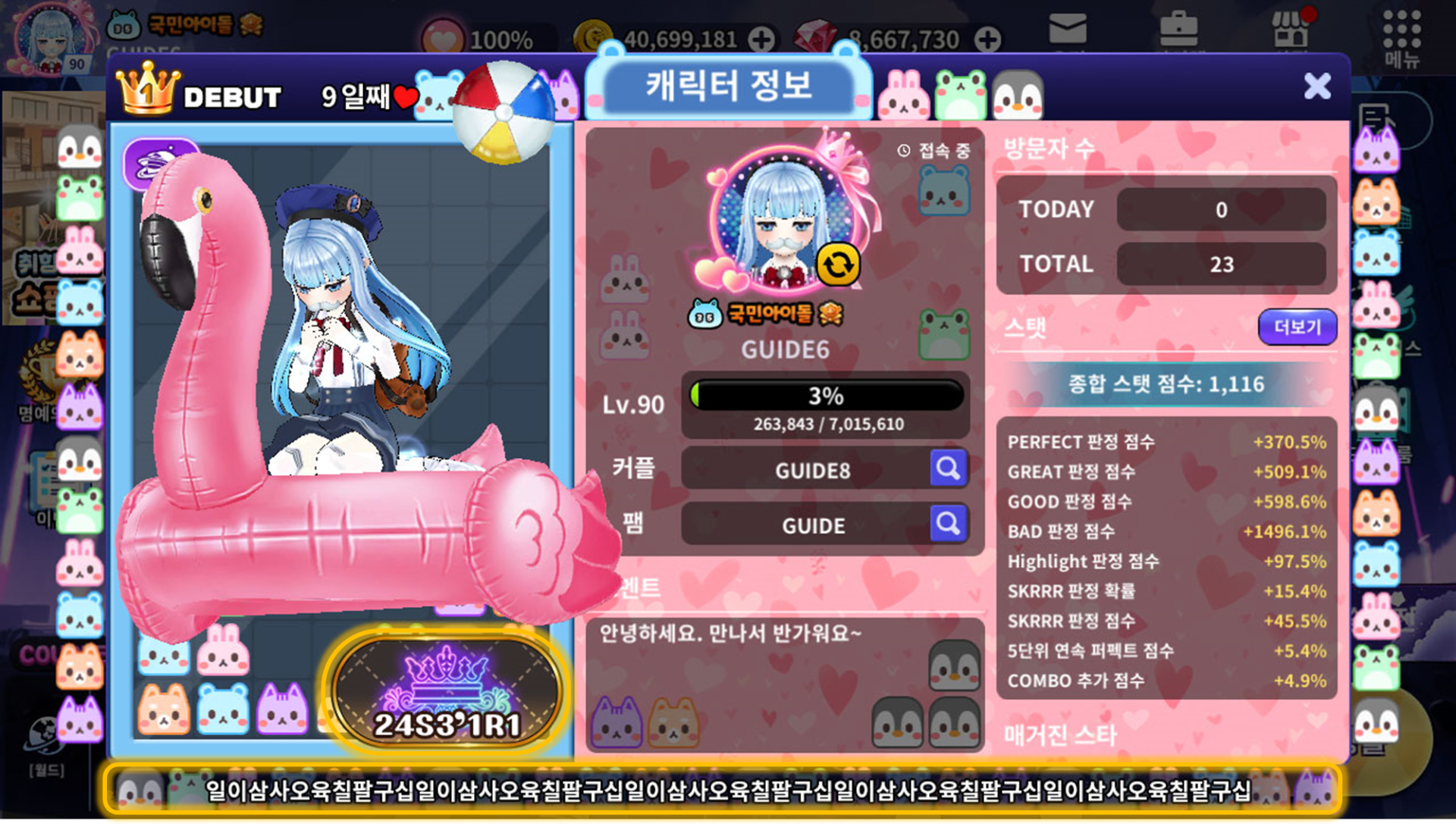 트웰브돌에 당선되면 캐릭터 정보 팝업이 달라집니다.