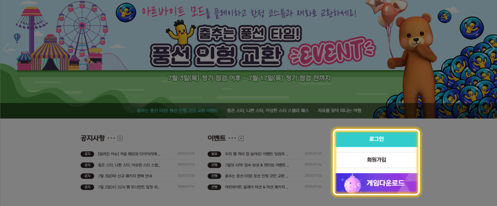- 럽플레이스 홈페이지 내 로그인 및 회원가입, 게임 다운로드 버튼의 위치가 변경되었습니다.