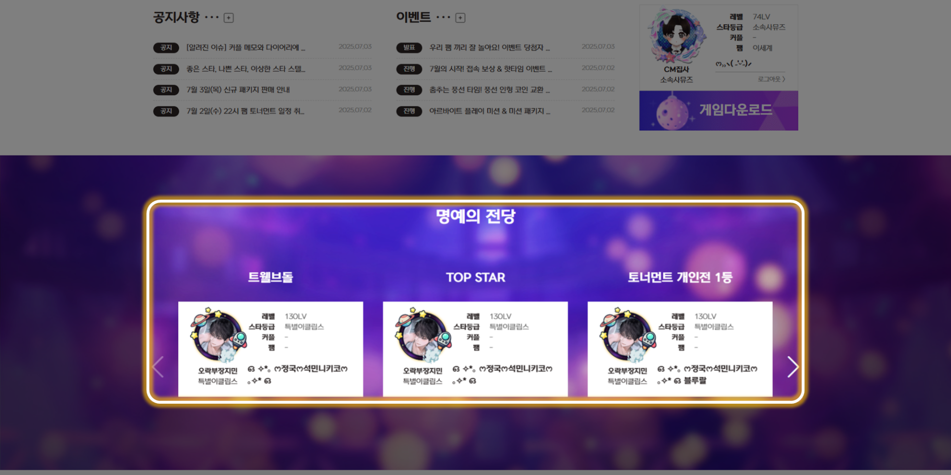 - '스타찾기' 기능을 통해 특정 스타 님의 닉네임을 검색 후, 캐릭터 정보를 열람하실 수 있습니다.