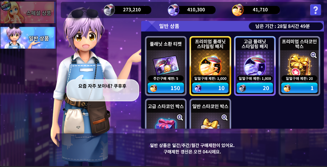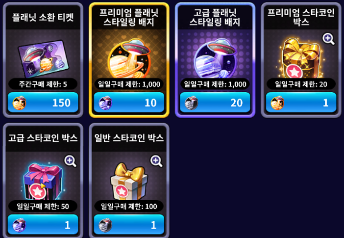 □ 플래닛 특별상점의 일반 상품 구성이 변경되었습니다.