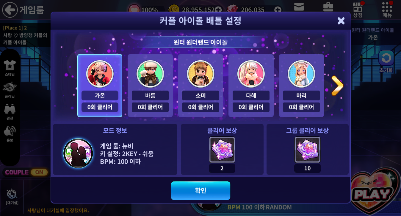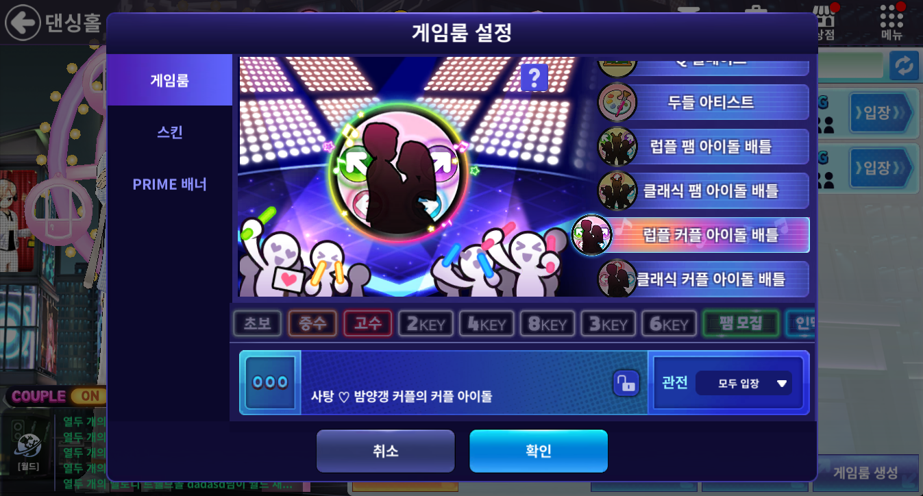 □ 커플 아이돌 배틀은 [메인 화면] - [댄싱홀] - [게임룸 생성] - [럽플 커플 아이돌 배틀]을 선택해 입장 가능합니다.