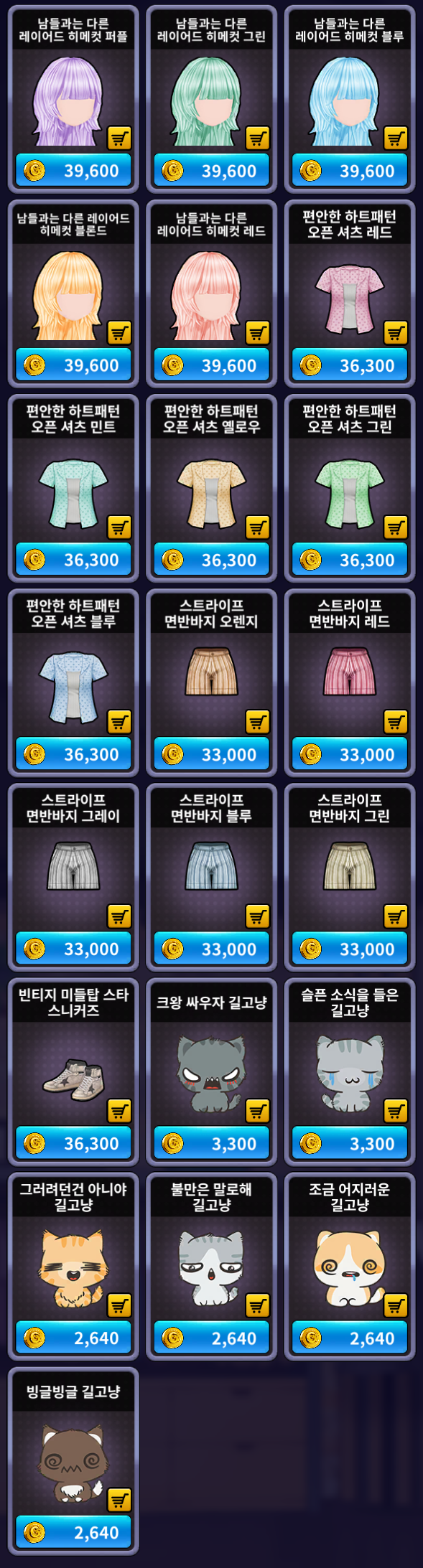 | 댄스 초급과정 | 여자 아바타 | 남들과는 다른 레이어드 히메컷 블루 |