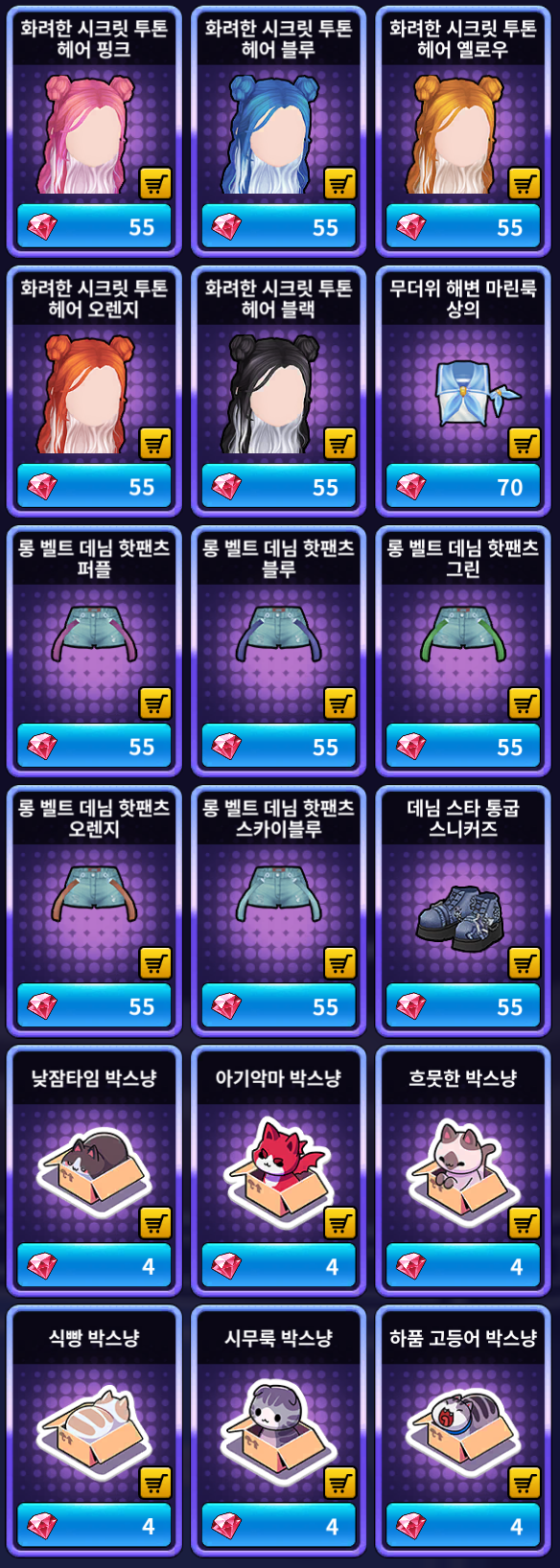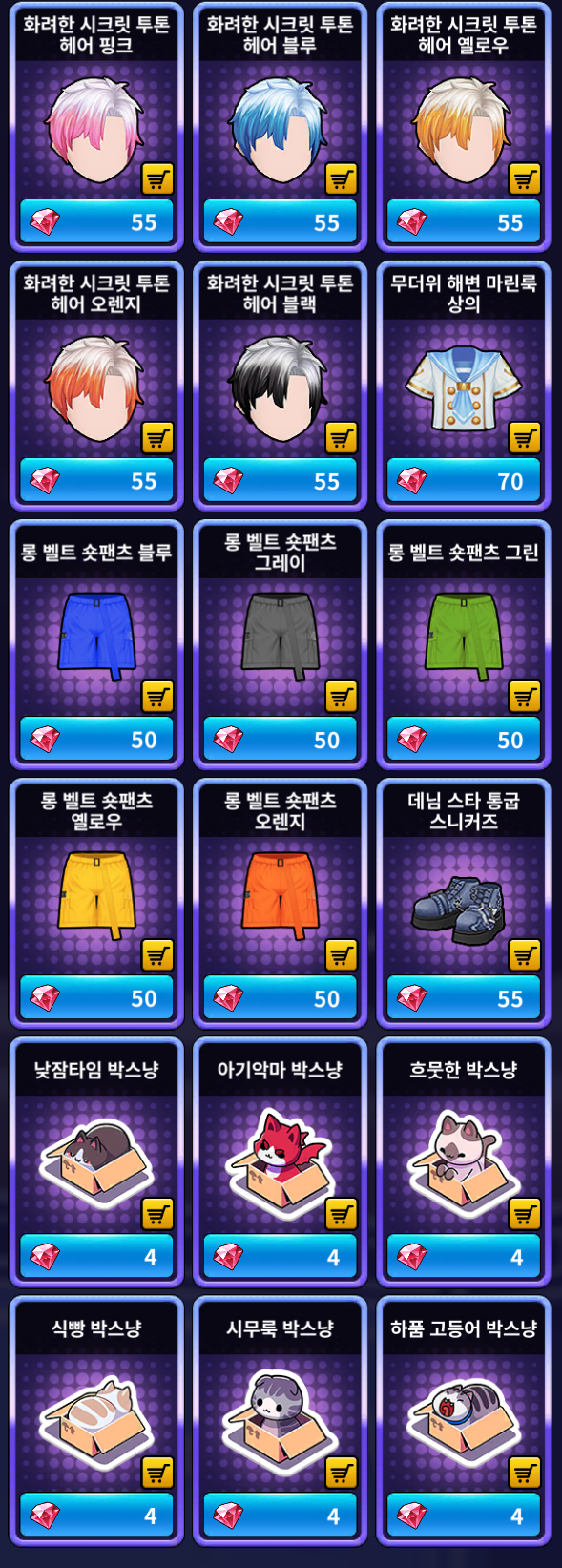 | 패션 | 쇼핑몰 상품 구매 (쇼핑몰 포인트 획득) + 플래닛 소환 횟수 + 페어리 테일 소환 횟수 | 패션 [상향↑] |