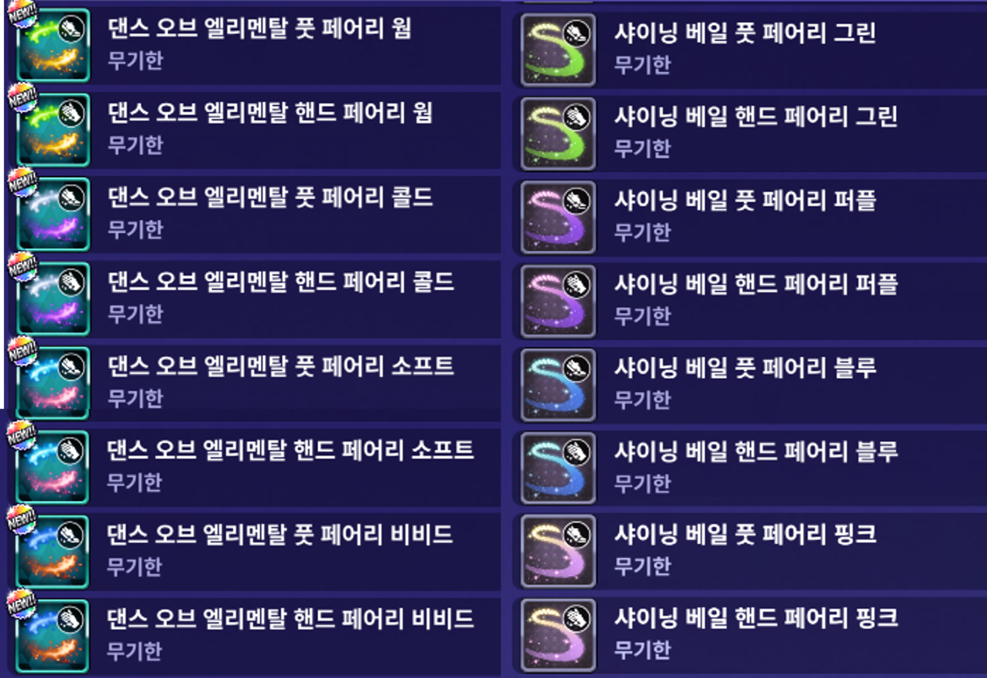 | 댄스 오브 엘리멘탈 핸드/풋 페어리 | 샤이닝 베일 핸드/풋 페어리 |