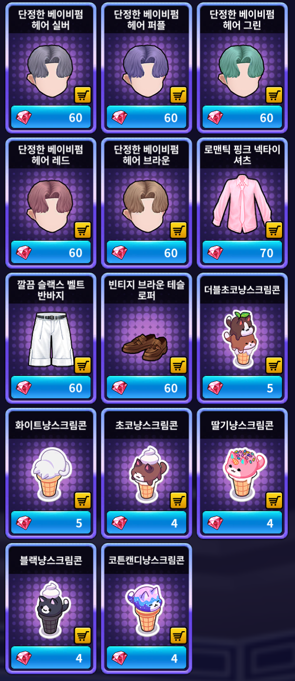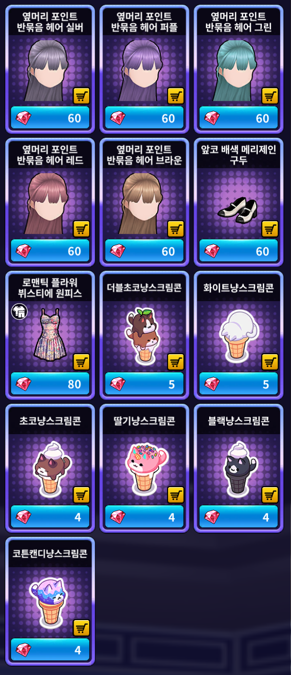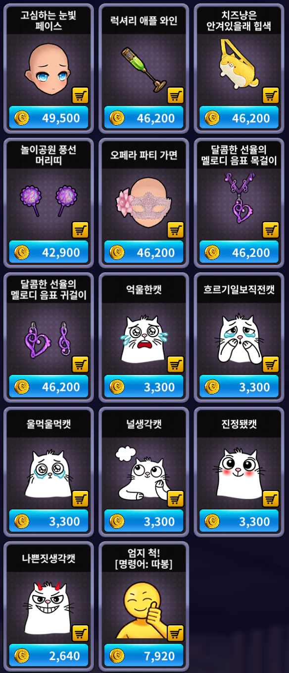 [골드 샵] 추가 상품 (공통)