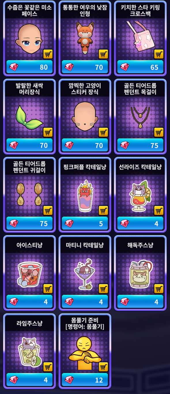 □ 추석 한정 이벤트로 셀럽코인 상점 상품 구성이 일부 변경되었습니다.