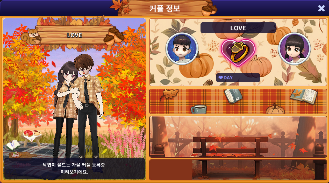 | 신규 커플 등록증: 낙엽이 물드는 가을 커플 등록증 |