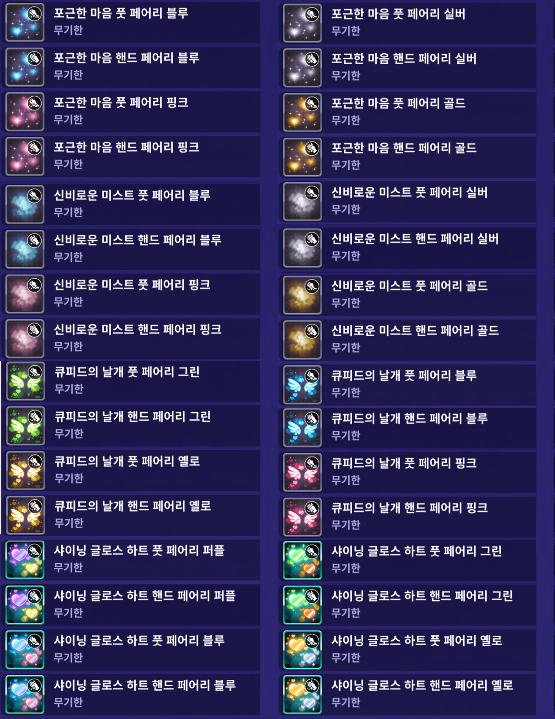 [드레스룸] - [핸드/풋 페어리]을 통해서 장착 가능합니다.