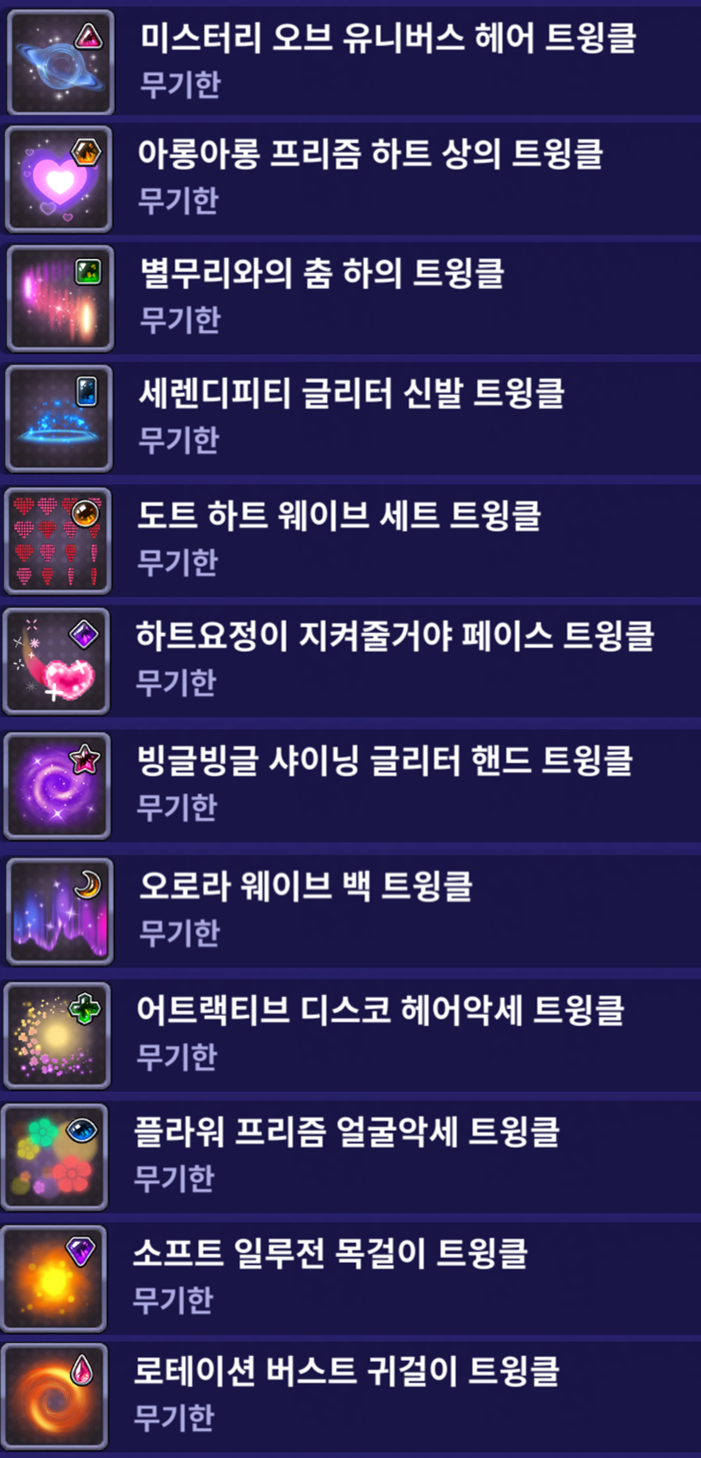 | 신규 트윙클 장착 미리보기 |