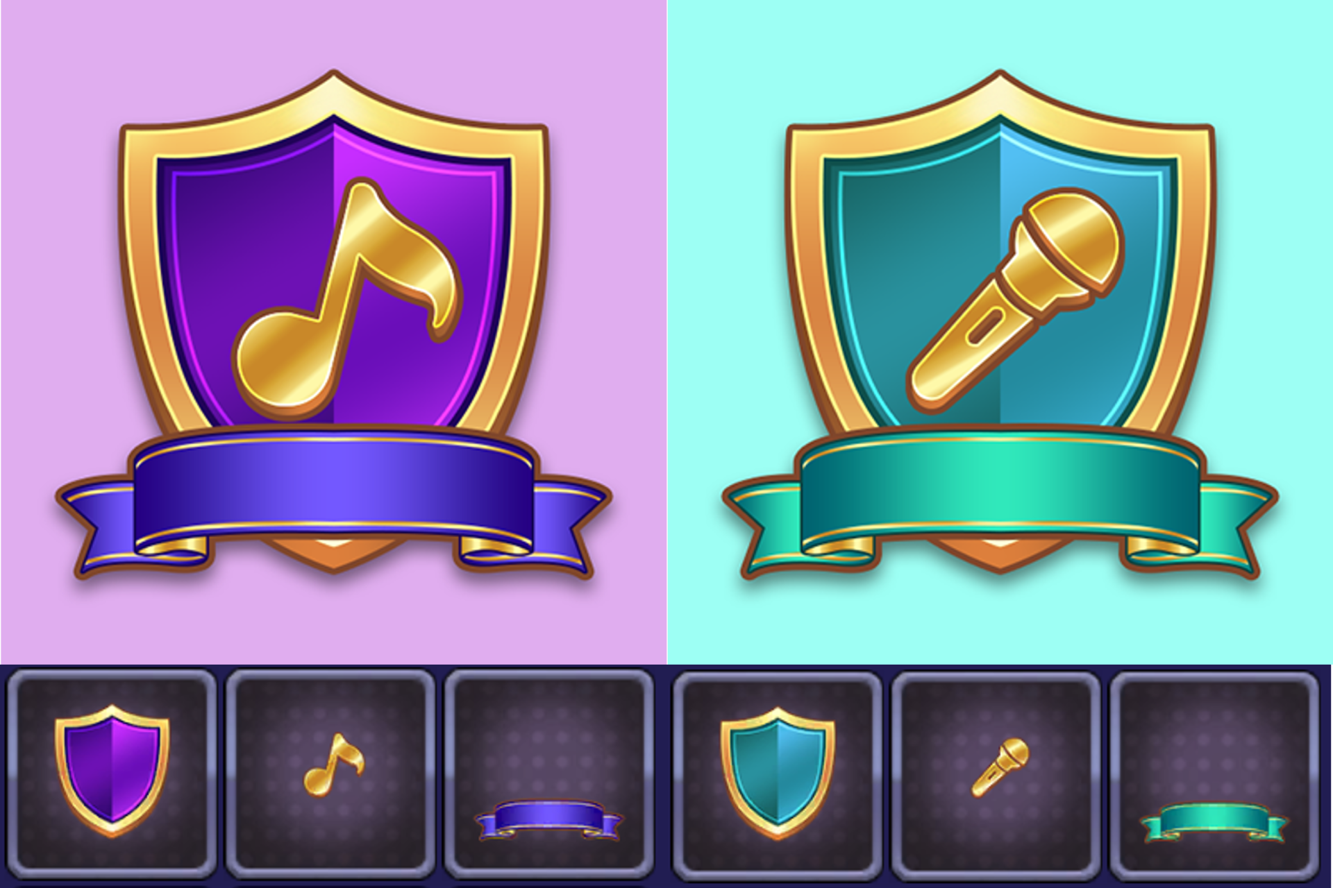 | 신규 팸 마크 - 황금 음표 방패 / 황금 마이크 방패 |