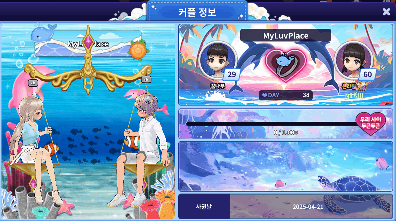| 신규 커플 배경: 우리 둘만의 섬 | 신규 커플 포즈: 둘만의 러브 싱크 참참참 포즈 |