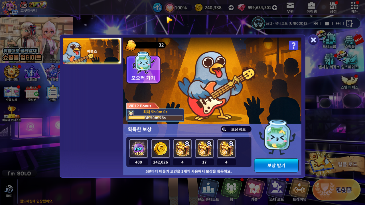 📌설정된 시간마다 재화를 소모해 보상을 누적해 나가는 [올나잇 버스킹]이 추가됩니다.