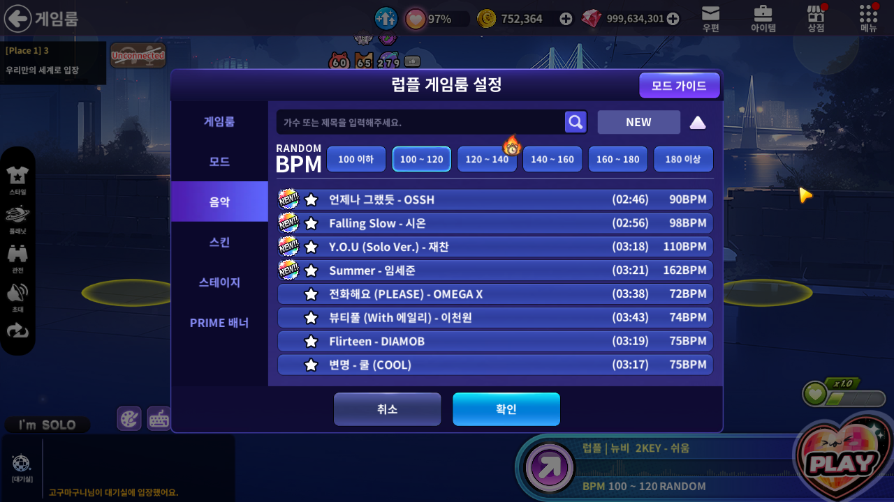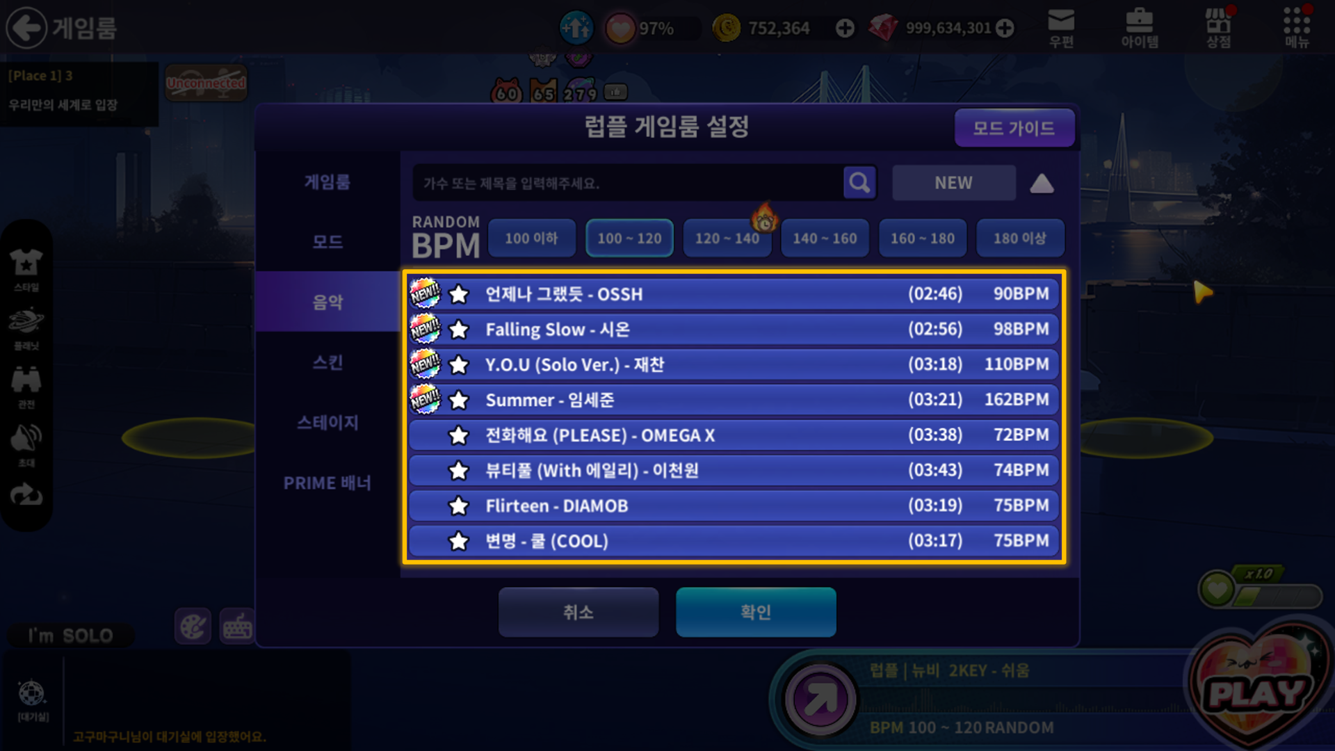 📌BPM 핫타임 이벤트는 랜덤 BPM을 선택해야만 이벤트가 발동됩니다.