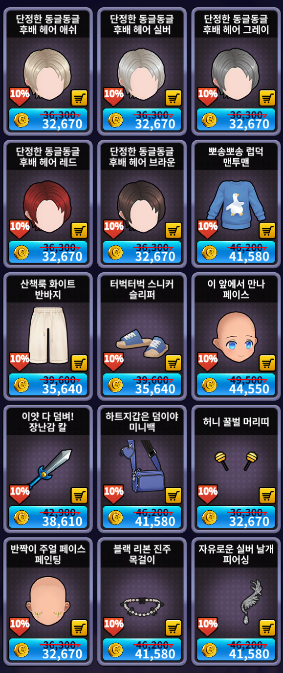 [골드 샵] 추가 상품 (남성)