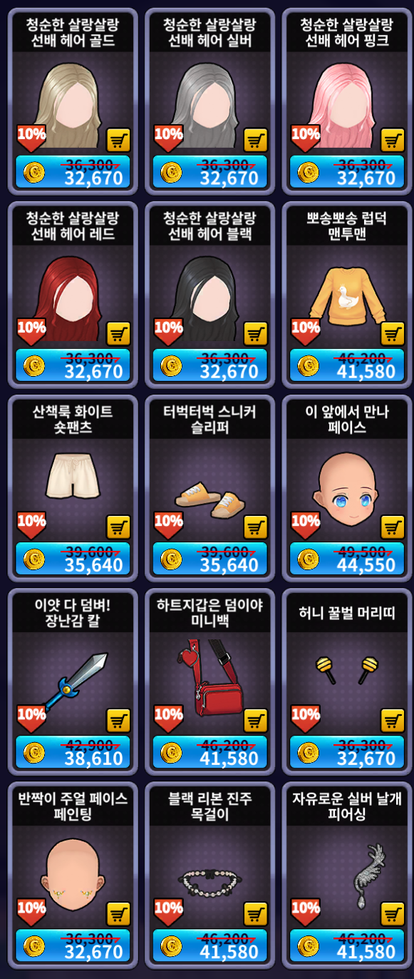 [골드 샵] 추가 상품 (여성)