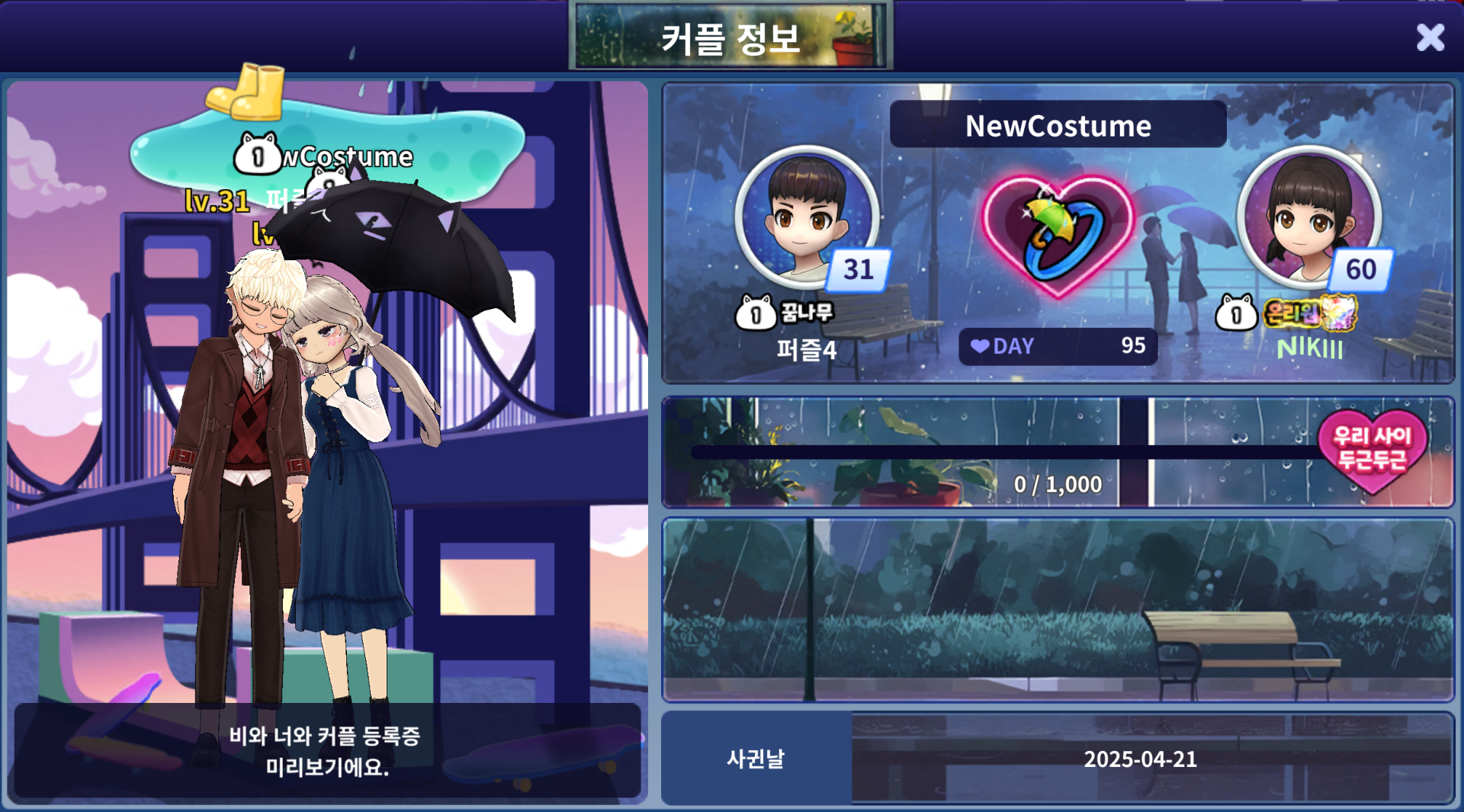 | 신규 커플 반지: 비와 너와 커플 반지 신규 커플 등록증: 비와 너와 커플 등록증 |