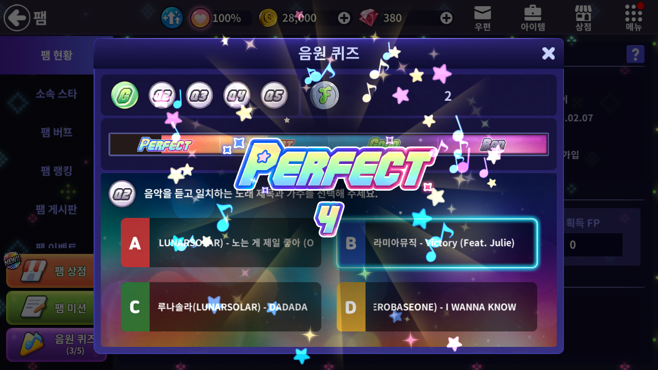 정답을 빨리 맞힐수록 더 많은 팸 명예주화를 획득할 수 있습니다.