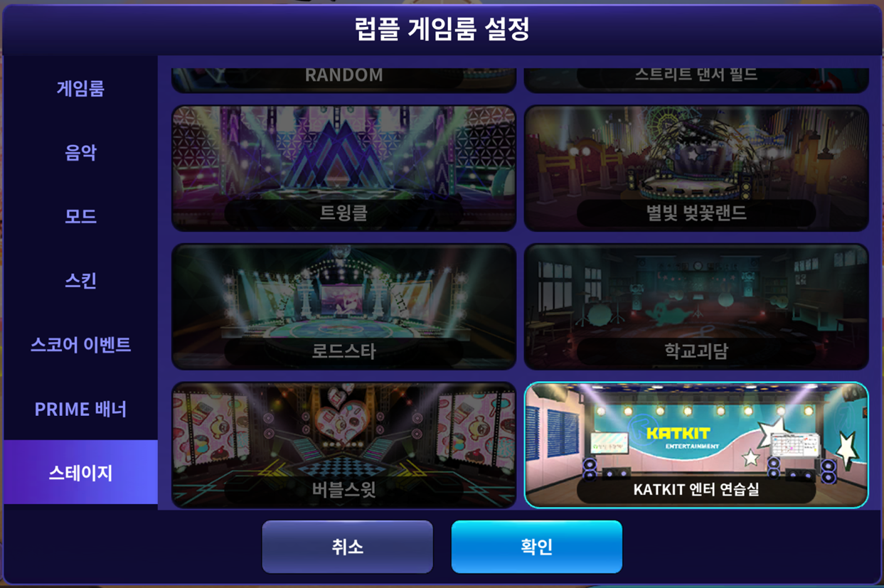 댄싱홀 - 게임룸 설정에 KATKIT 엔터 연습실이 추가되었습니다.