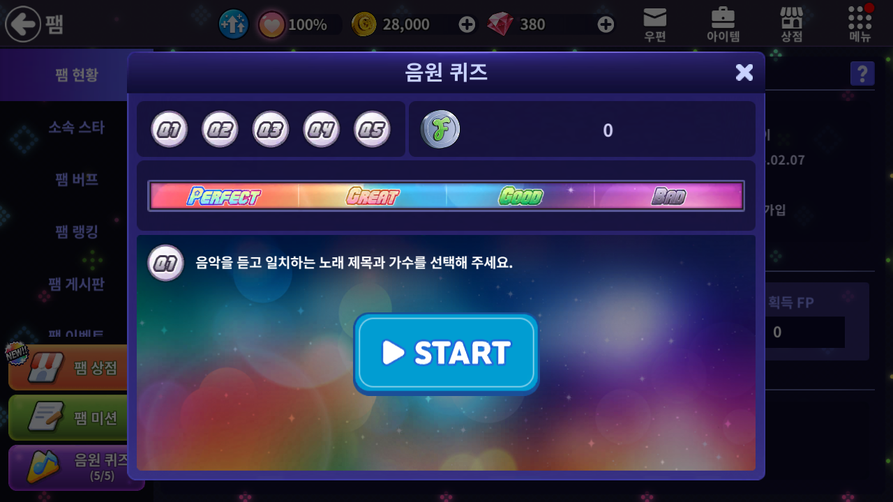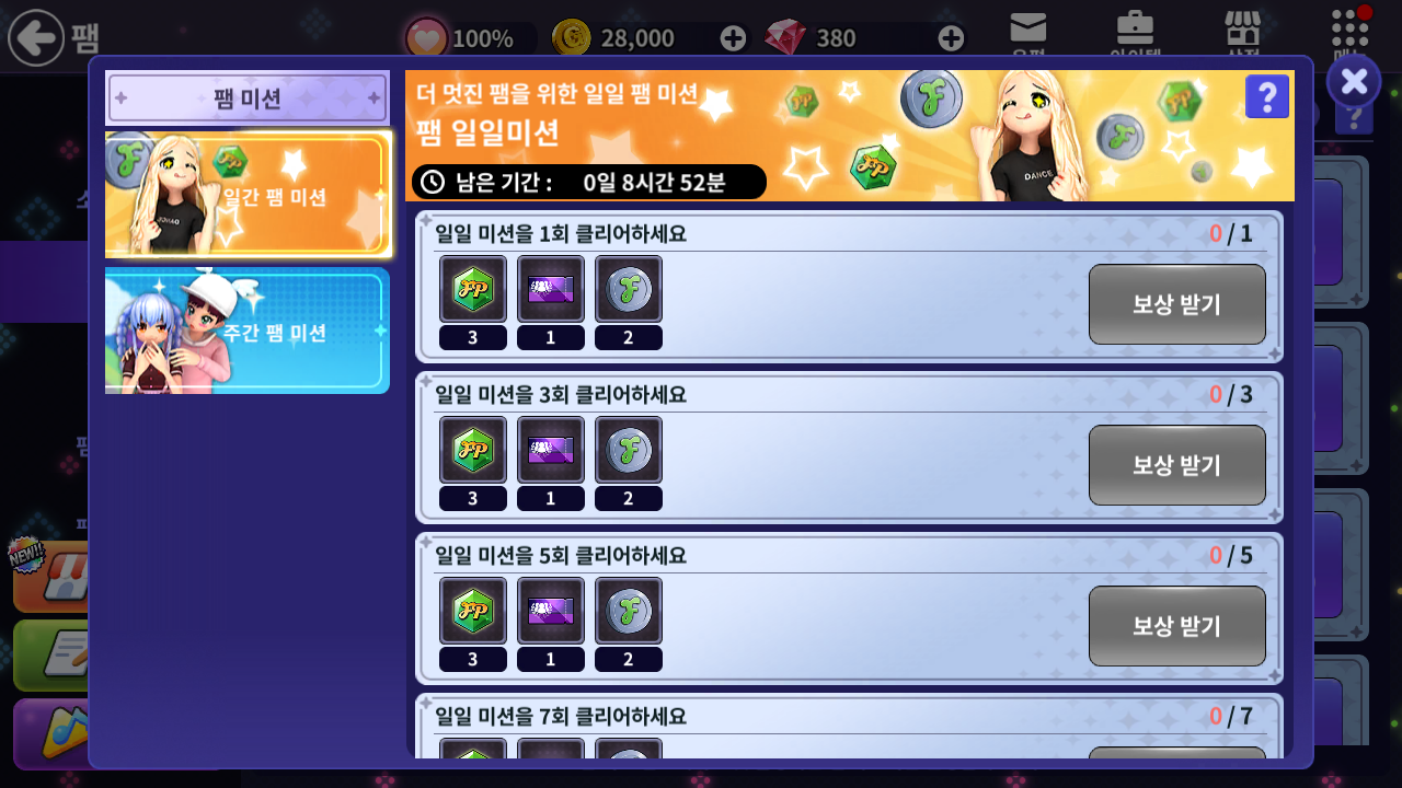 2/8(목) 04:00AM 기준 진행 된 일간 팸 미션이 삭제되며, 신규 일간 팸 미션으로 대체됩니다.