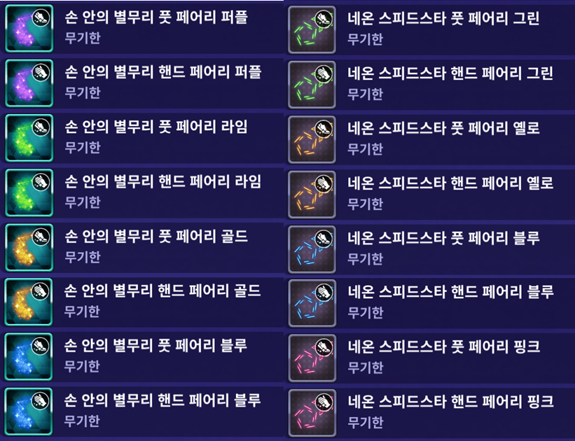 [드레스룸] - [핸드/풋 페어리]을 통해서 장착 가능합니다.